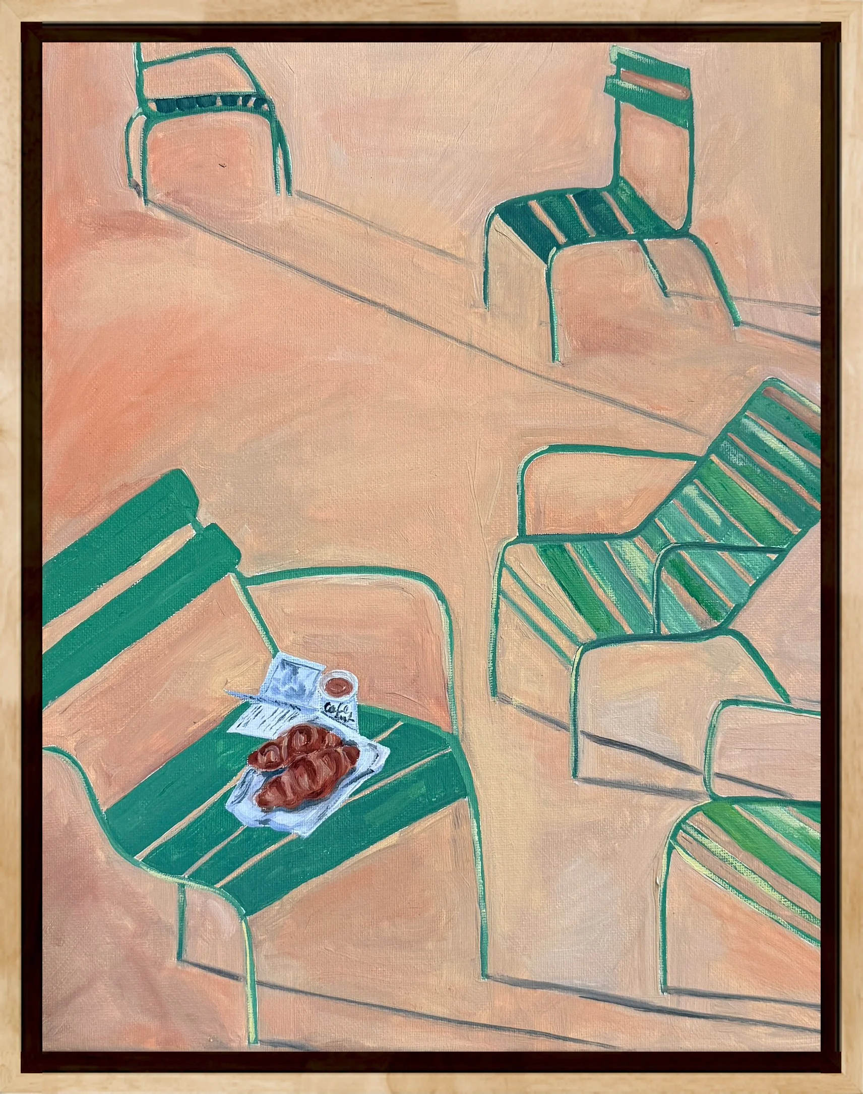 The Parisian Cafe Series was born from my three major loves in my life. Paris, coffee, and croissants (what can possibly be better than that? ) Painted using soft pastels and oil paint, I wanted the series to be fun and light hearted and to not take itself too seriously. Maybe it will spark memories of your own time in Paris or remind you of the last time you had sometime to yourself at a local cafe. Whatever the case, however it makes you feel, remember that the little things in life are always worth holding on to.