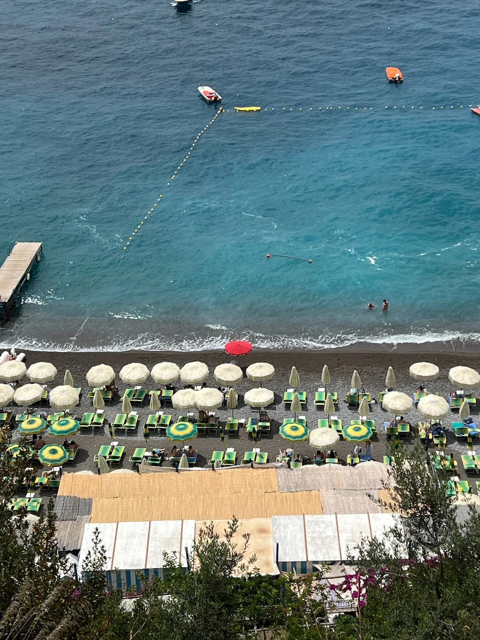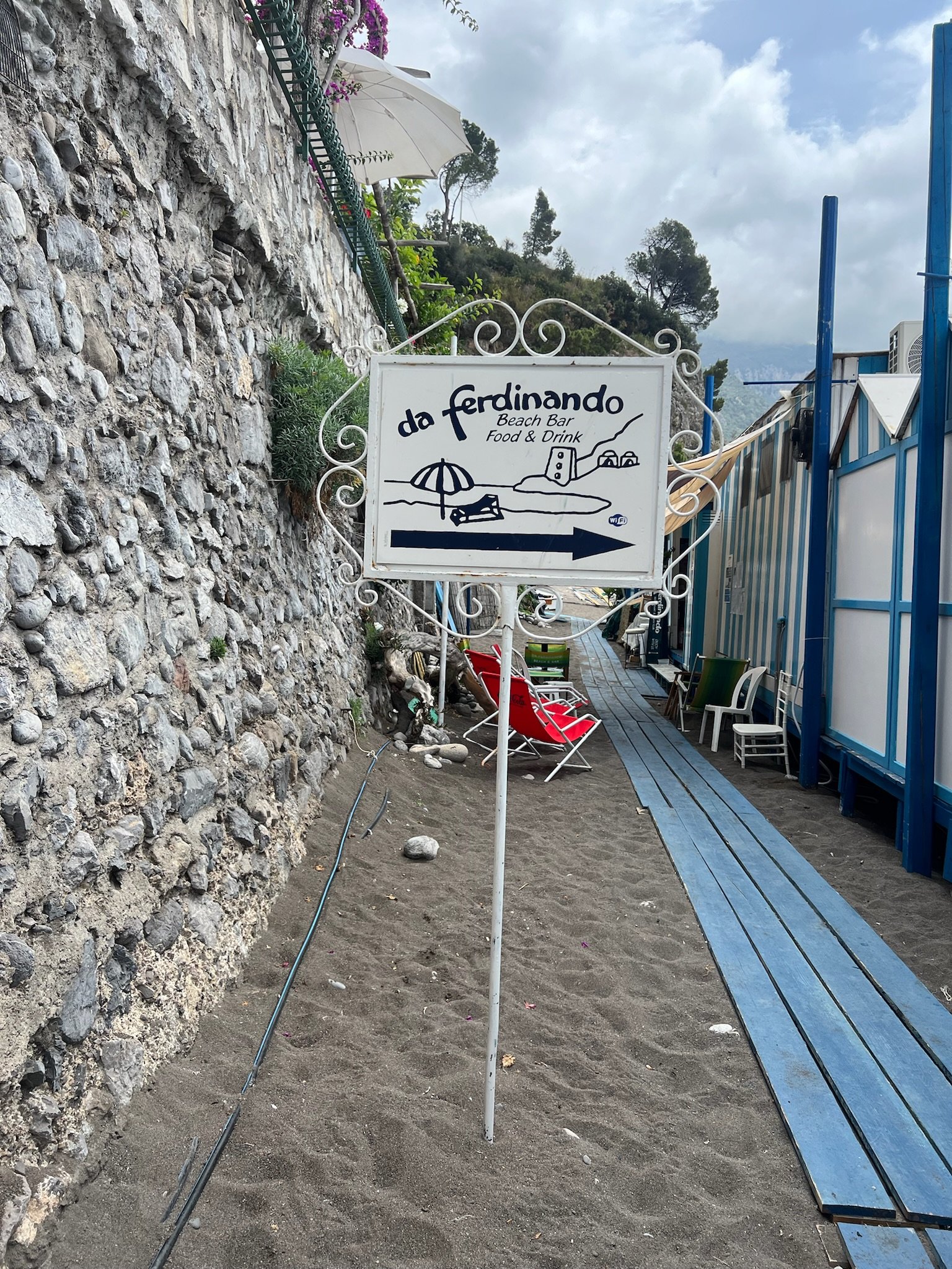 Third day activities were all about Positano. We walked down to Hotel La Conca Azzurra and bought or bus tickets from their lobby to head towards Positano. We had pre booked our reservations with Da Ferdinando Beach Club prior to our arrival in Italy and I suggest you do the same specially when going during the summer months. Beach club reservations vary in price depending on the “row” that you book. For example the first row will be the one with no view abstraction to the beach and it would be the most expensive, second row would be right behind and is a bit cheaper and so on. We booked the first row because if you go all the way to Positano you might as well get the best view. We left our AirBnb around 9AM and headed straight to the Beach Club. We wanted to enjoy as much time there as possible and really take advantage of the day. We chose Da Ferdinando because we wanted a more low key experience. Specially traveling with our kids we were not interested in a party scene or a luxury Beach club. We wanted to hangout just have a good time. When you book with Da Ferdinando they will send you over directions depending on where you are coming from and are always available through Insta DM in case you have any questions.
