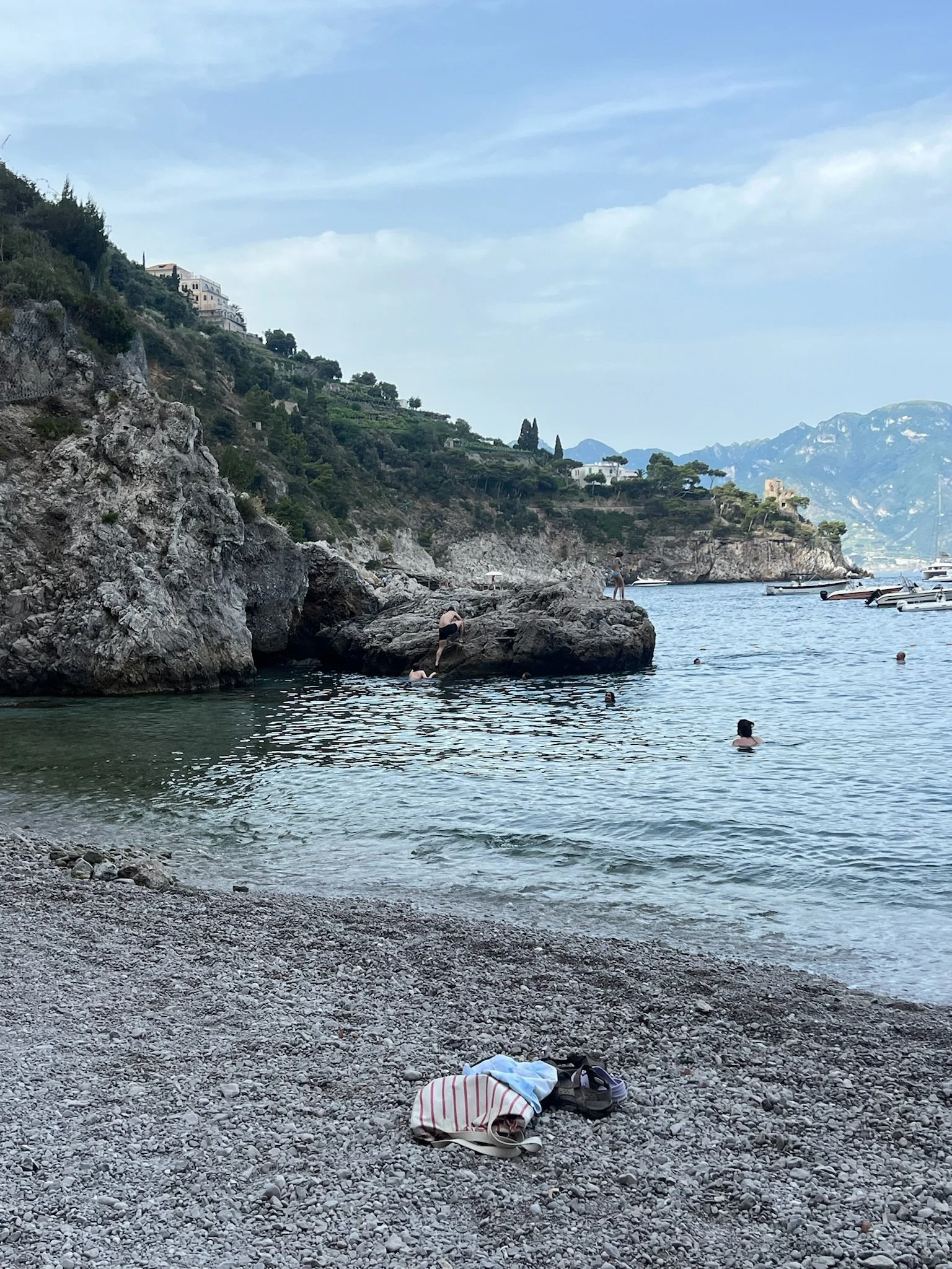 The Conca Dei Marini beach was about a 20 min walk from the AirBnB. it was actually quit easy getting there, there are a lot of signs along the way pointing you towards the beach. The beach was not crowded at all; we really enjoyed hanging out people watching.