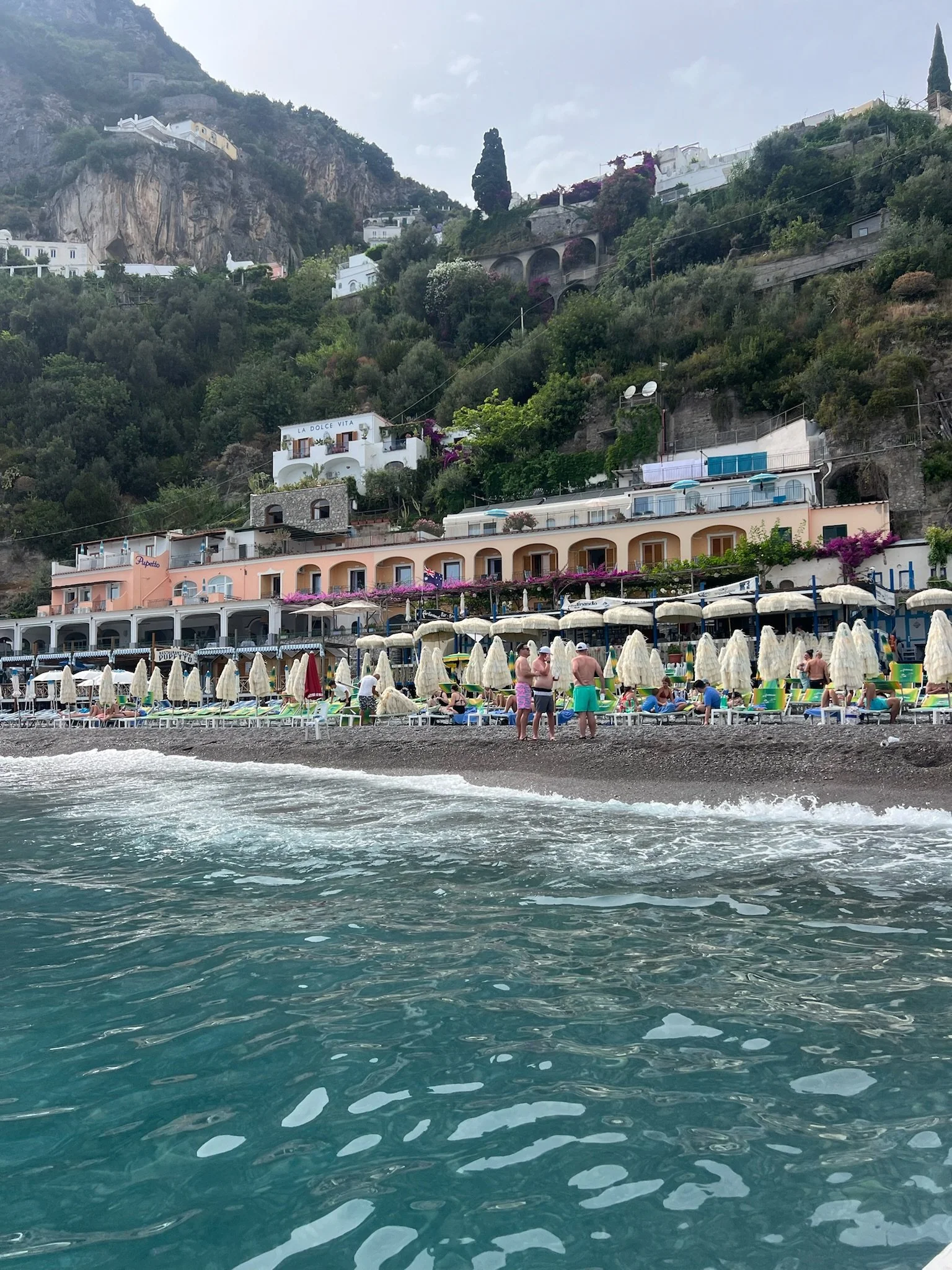 Once we finally arrived it was magical. Of course to the true nature of the Amalfi Coast you have to go down tons of steps to get to the beach but it is worth it. We spent the rest of the day laying out and enjoying the water. There is a small vendor that sales alcoholic drinks and water and you can also rent a beach bed to lay out if you would like; we just laid out on our towels. Now another very important thing to note the beaches are very rocky you will need water shoes. Trust me, it is so worth it to just take true water shoes. Crocs don’t cut it, trust me we tried it. You will be regretting it the moment you step onto the beach.